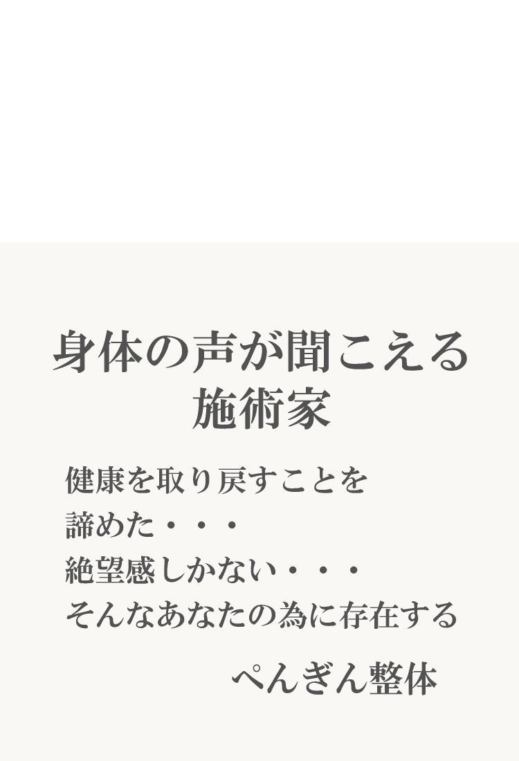 → ぺんぎん整体の施術は、身体の持つ再生力を最大限に引き出すことが目的です